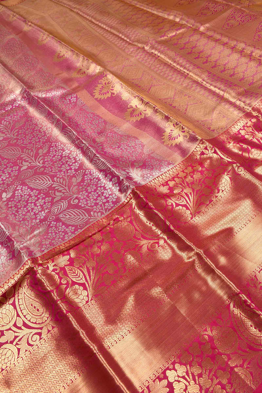 Pink Semi Silk Intricate Design Contrast Pink Mango Border Bridal Tissue Saree