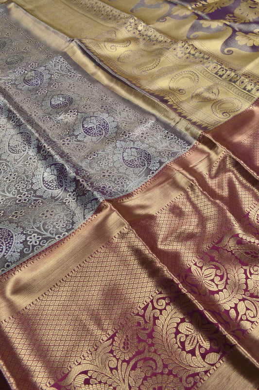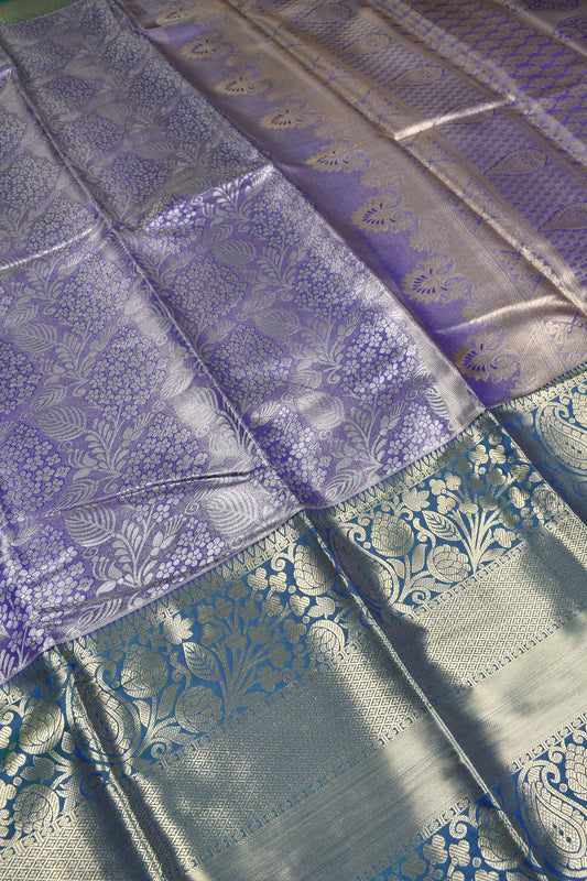 Light Violet Semi Silk Contrast Border Grand Pallu Bridal Tissue Saree