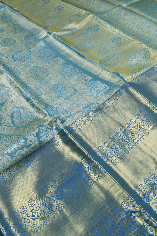 Blue Semi Silk Leaf Design Paisely Pallu Bridal Tissue Saree