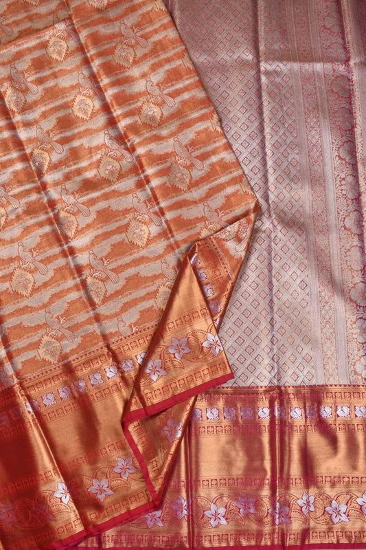 Sunset Orange Semi Silk Fancy Design Bridal Tissue Saree