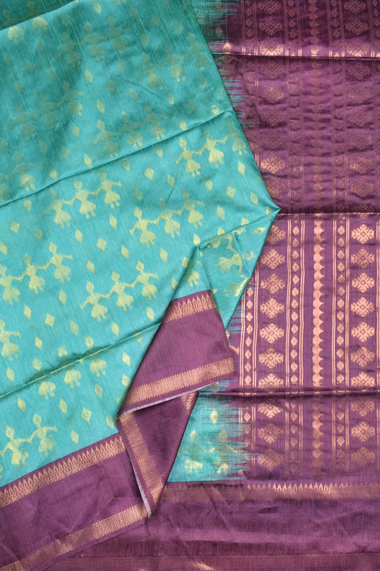 Blue Semi Tussar Golden Toys Printed Contrast Border Pallu Saree