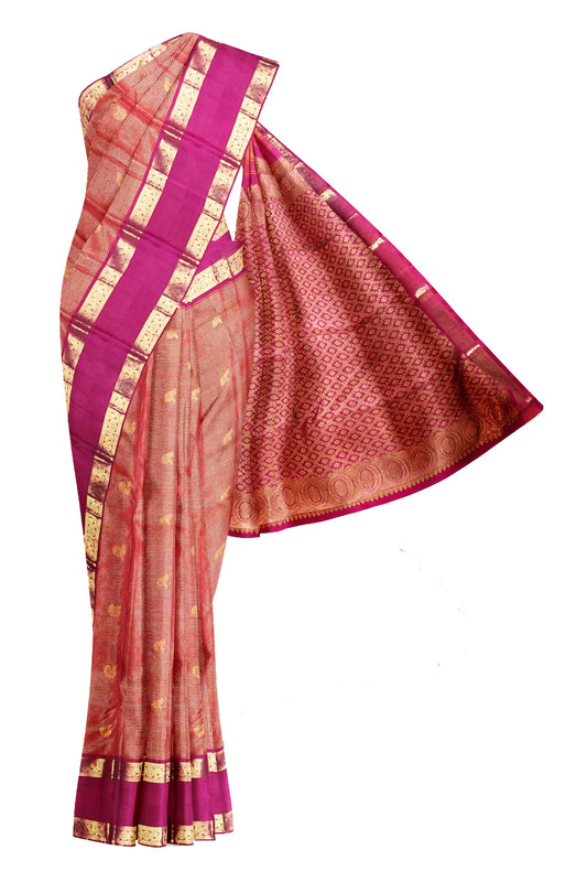 Maroon Kanchipuram Bridal Pure Silk Copper Zari Mango Butta Border Pink Contrast Pallu Saree