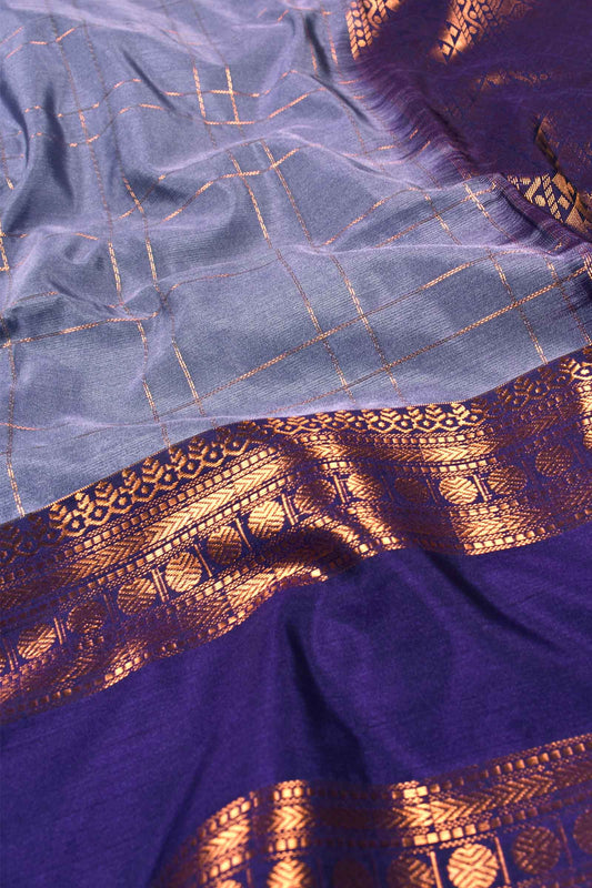 Light Violet Body Checks Rudraksh Double Border Semi Soft Silk Saree