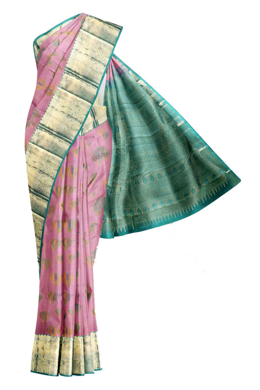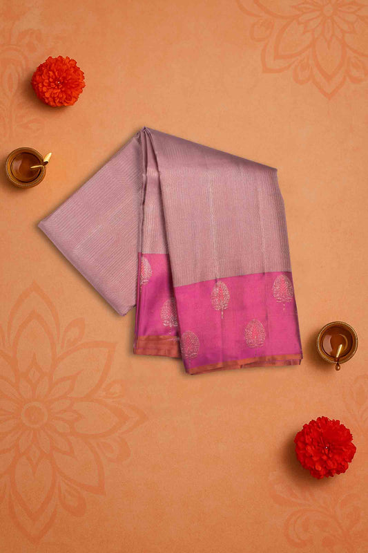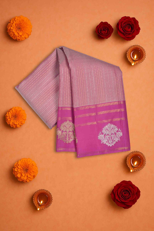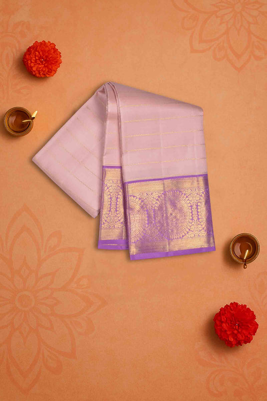 Light Violet Kanjivaram Pure Silk Contrast Rettai Pet Border Peacock Pallu Saree