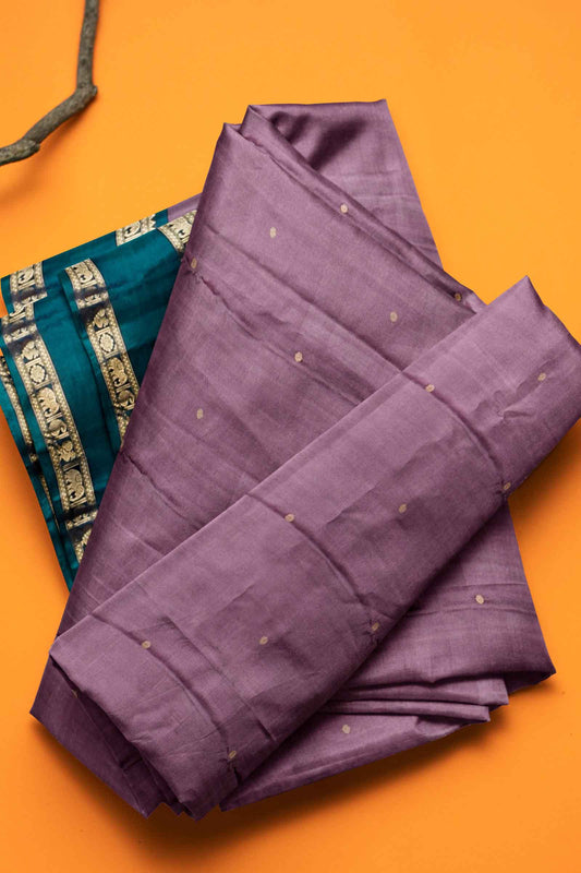 Light Violet Light Weight Pure Silk Contrast Blue Border Balloon Butta Saree
