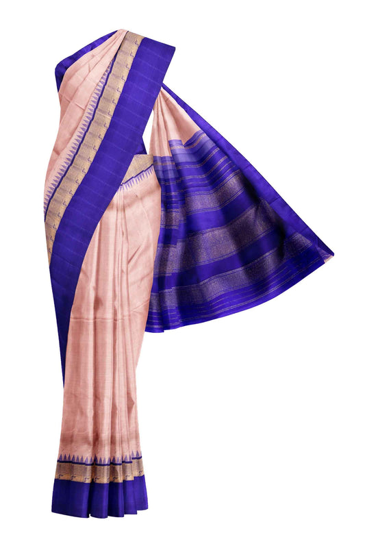 Light Peach Light Weight Pure Silk Contrast Violet Border Saree