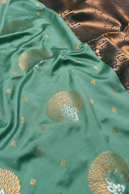 Light Green Semi Silk Peacock Border Bridal Tissue Saree