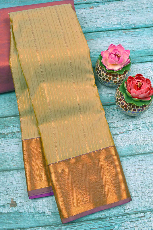 Light Green Semi Soft Silk Zari Lines Fancy Violet Border Saree