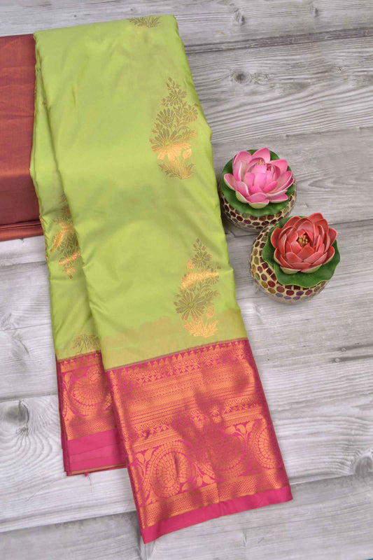 Light Green Semi Silk Rich Floral Body Contrast Zari Border Pallu Saree