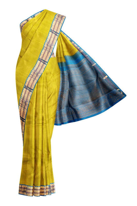 Green Light Weight Pure Silk Plain Contrast Blue Pallu Traditional Border Saree