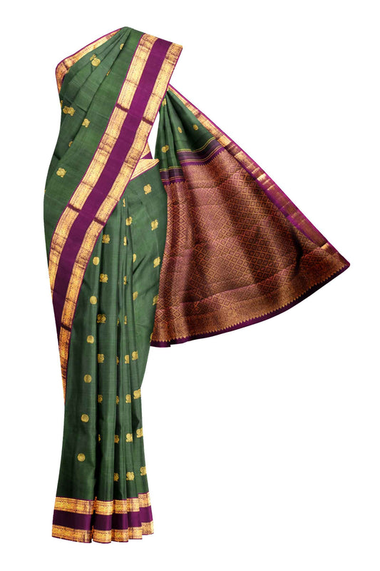 Green Light Weight Pure Silk Peacock Butta Golden Violet Zari Fancy Pallu Saree NAA136