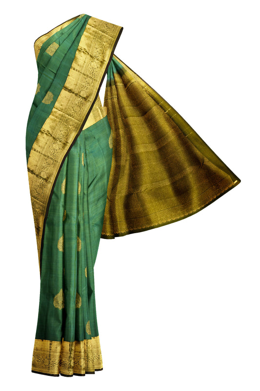 Green Kanjivaram Pure Silk Retapetai Double Border 1000 Butta Allover Saree