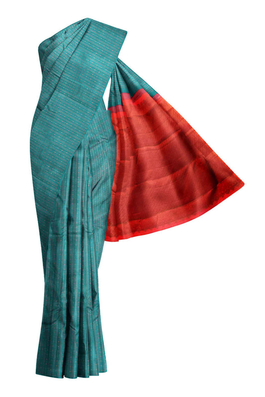 Green Light Weight Pure Silk MultiLine Zari Contrast Pallu Saree