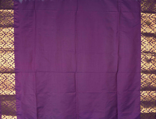 Green Double Jari Butta Purple Contrast Kottanj Border Semi Soft Silk Saree