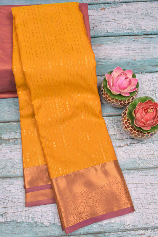 Golden Yellow Semi Silk Contrast Palanquin Border Pallu Saree
