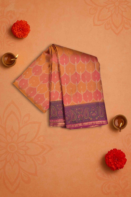 Golden Mustard Yellow With Pink Light Weight Pure Silk Fancy Print Voilet Border Zari Pallu Saree NAA142