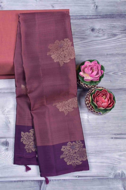 Golden Light Violet Body Fancy Butta Contrast Pallu Semi Soft Silk Saree