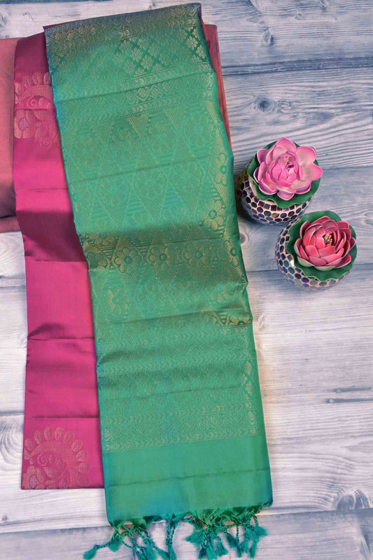 Golden Dark Pink Body Fancy Butta Contrast Pallu Semi Soft Silk Saree