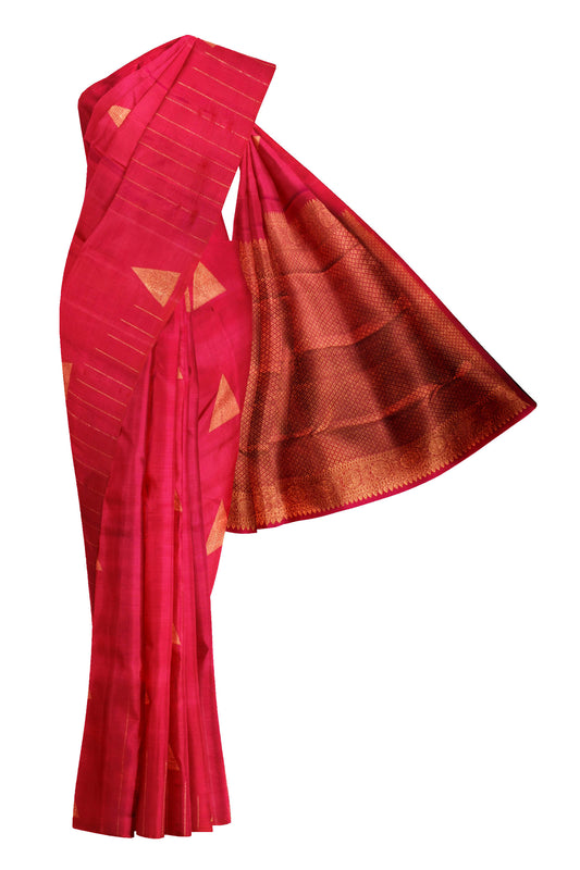 Dark Pink Light Weight Pure Silk Borderless Triangle Butta Saree