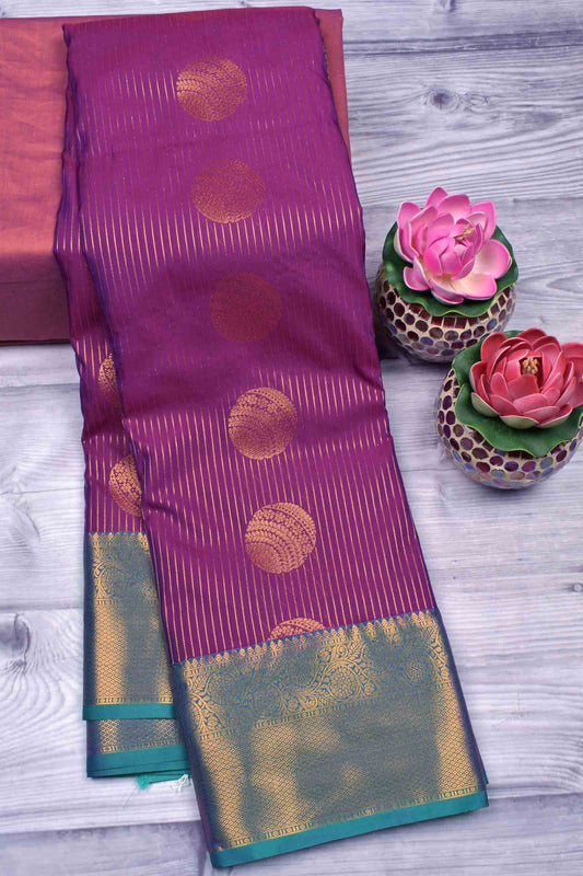 Dark Violet Semi Soft Silk Zari Lines Fancy Sphere Butta Saree