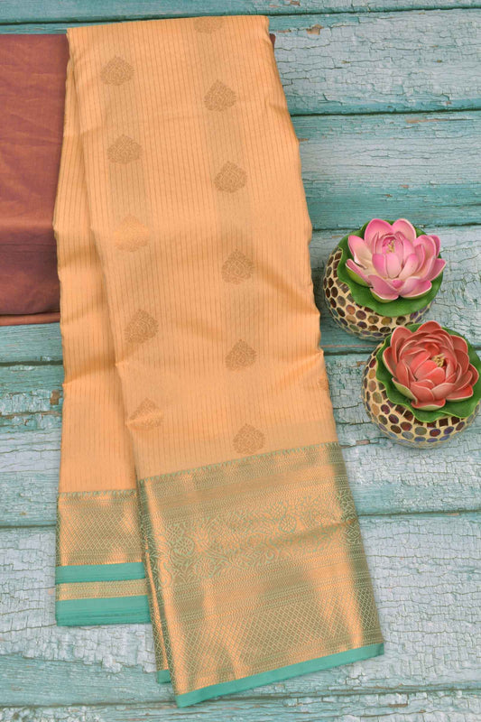 Dark Sandal Semi Soft Silk Zari Lines Contrast Border Saree