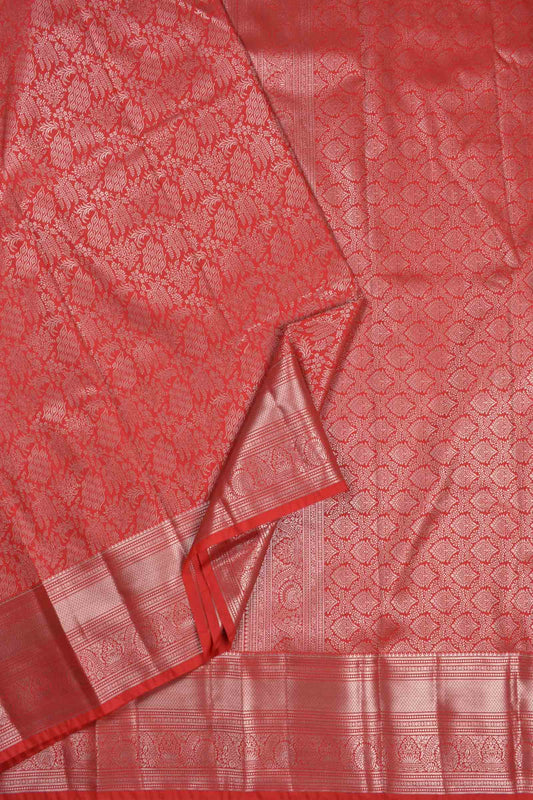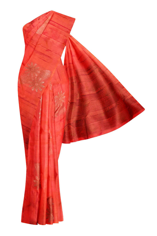 Dark Orange Light Weight Pure Silk Big Butta Borderless Saree