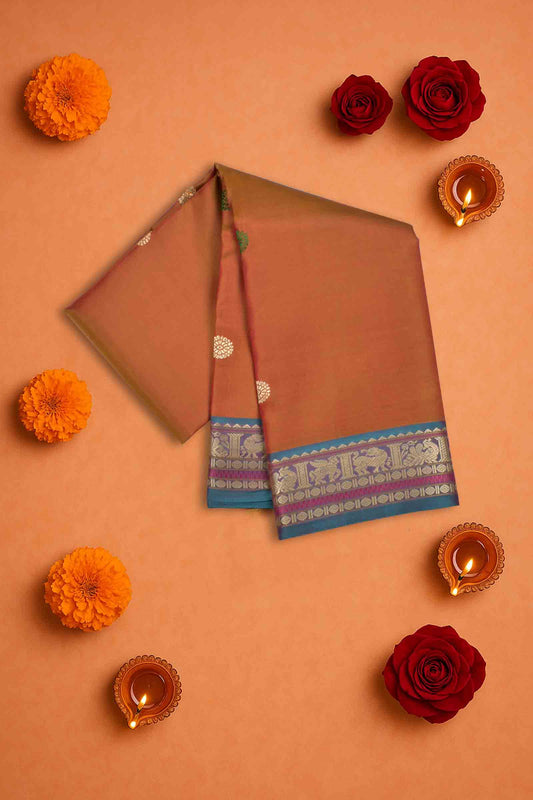 Bronze Brown Light Weight Pure Silk Butta Annam Yazhi Border Pallu Saree NAA149