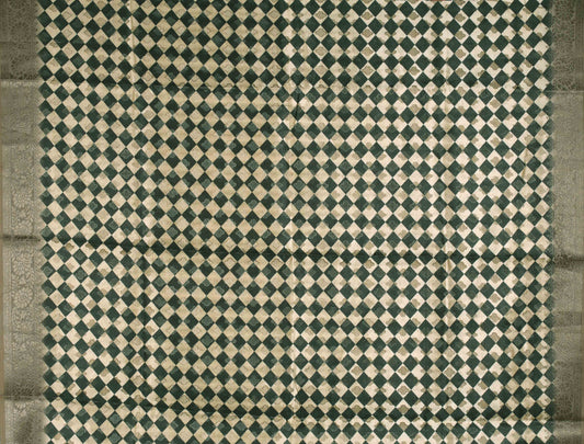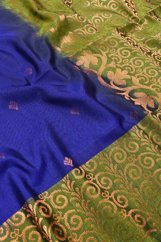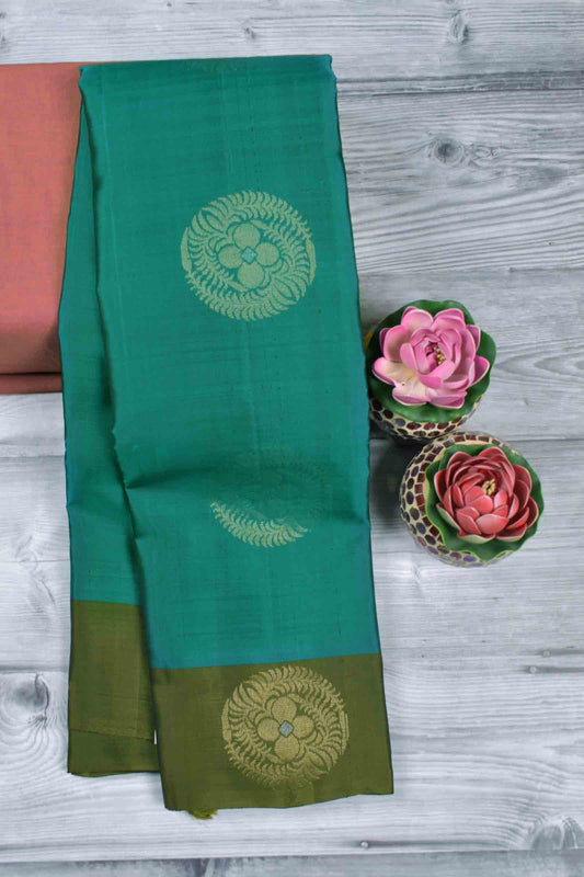 Blue Green Body Fancy Butta Olive Green Border Pallu Semi Soft Silk Saree