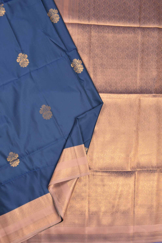 Blue Floral Butta Pink Contrast Pallu Semi Soft Silk Saree
