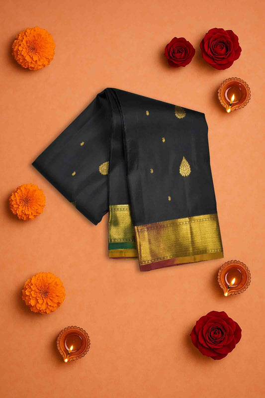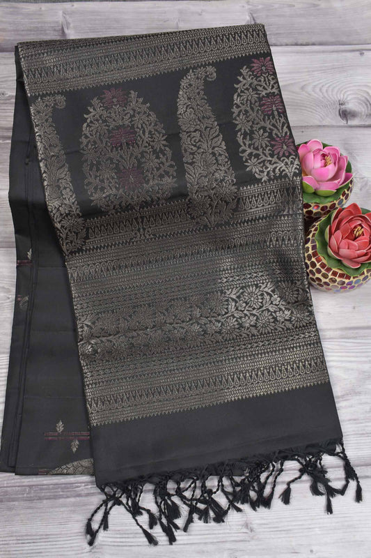 Black Pure Soft Silk Fancy Mango Butta Mango Flowers Pallu Saree NAA207