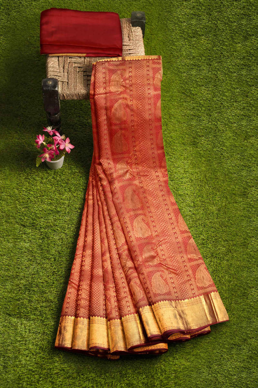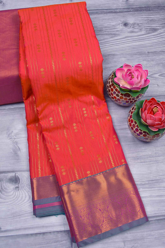 Pink With Orange Shade Semi Silk Fancy Butta Contrast Pallu Blouse Saree