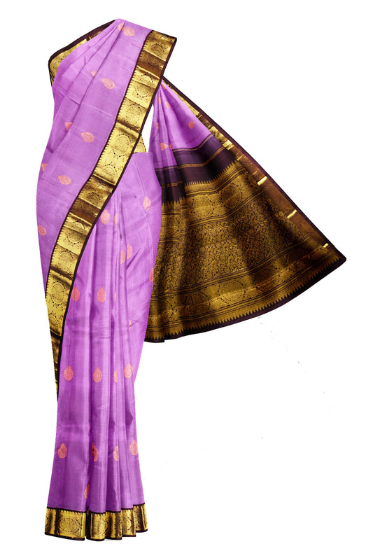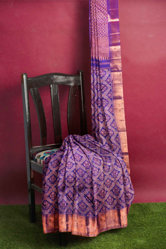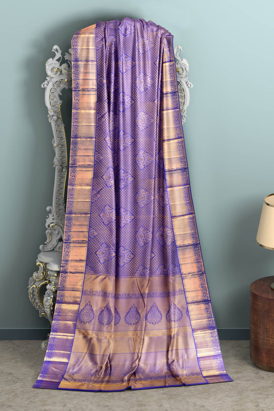 Purple Kanchipuram Bridal Pure Silk Interchain Body Self Pallu Saree