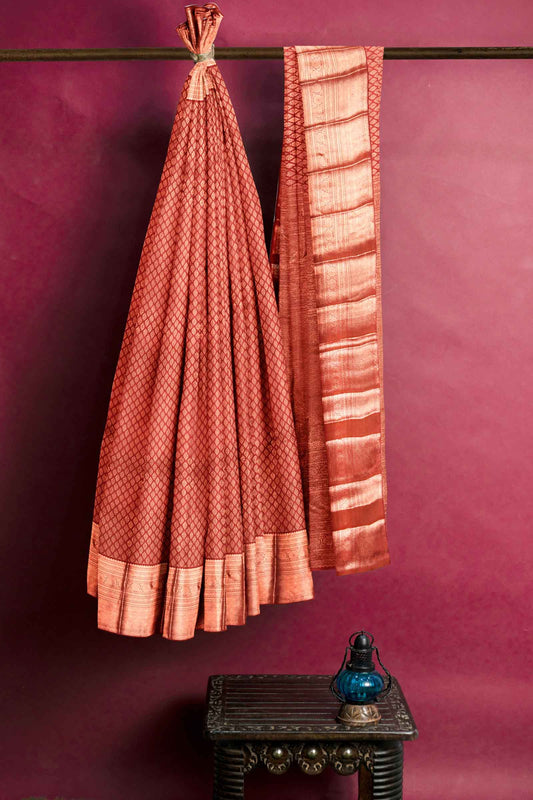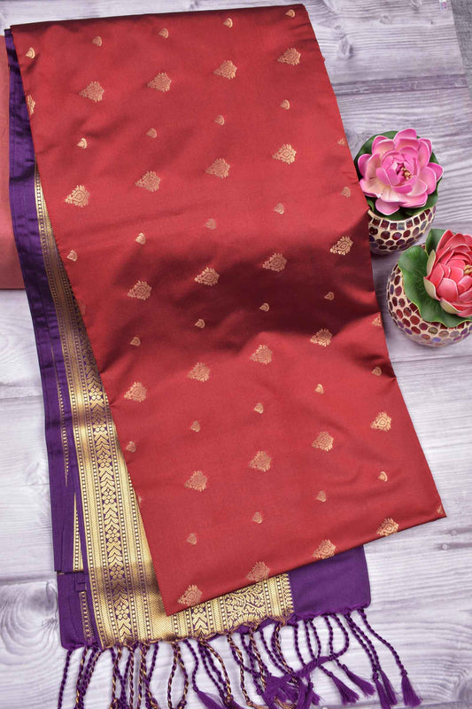Red Light Weight Pure Silk Butta Mini Checks Golden Border Pallu Saree NAA110