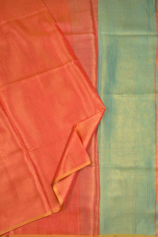 Pink With Orange Linen Tissue Contrast Pallu Saree