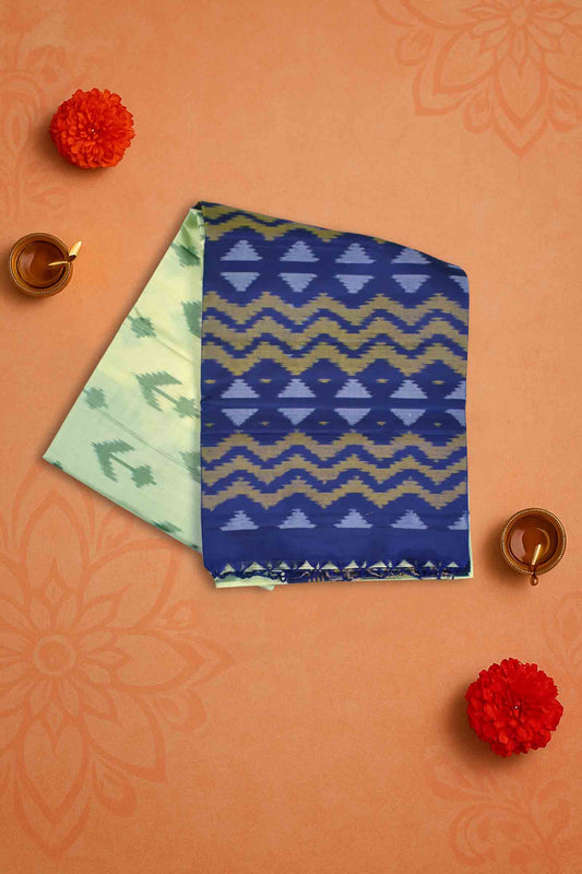Pistha Green Pure Soft Silk Ikkat Pochampalli Contrast Fancy Border Pallu Saree NAA203