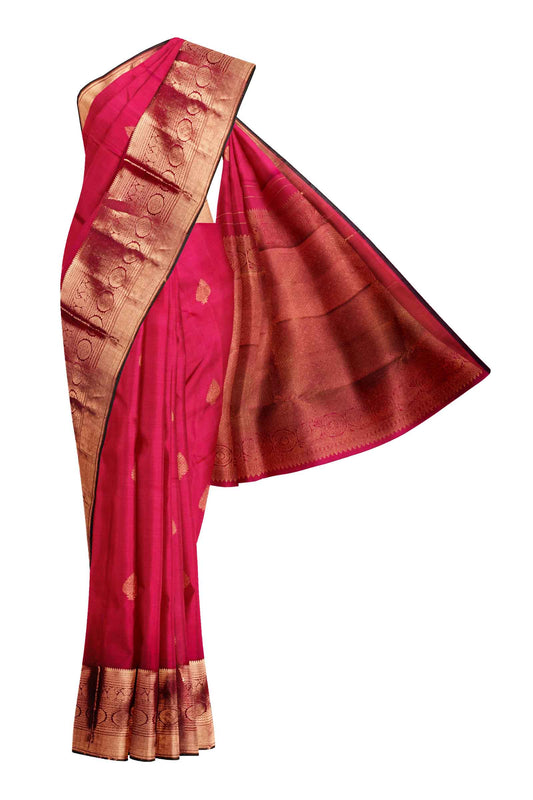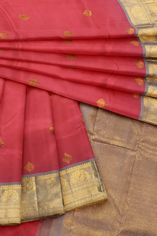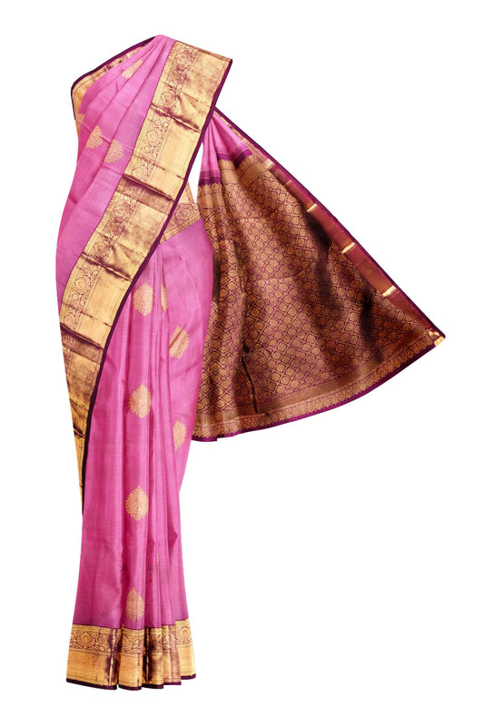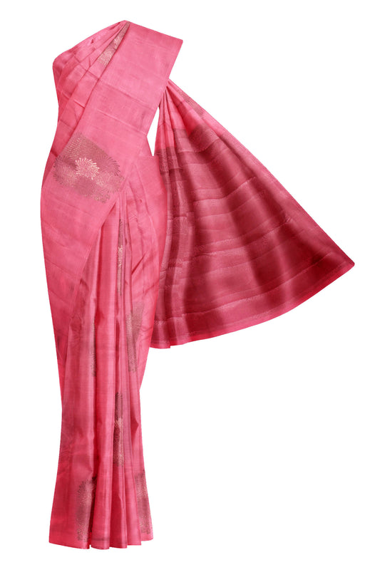 Pink Pure Silk Khumbam Butta Contrast Pallu Saree
