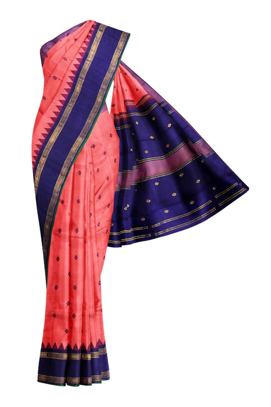 Peach Light Weight Pure Silk Contrast Violet Border Saree