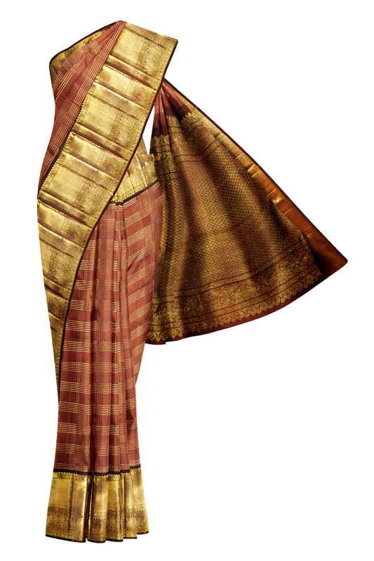 Peach Light Weight Pure Silk Line Zari Contrast Blouse Saree