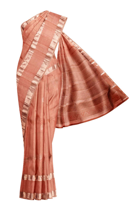 Peach Semi Silk Rich Self Jacquard Contrast Traditional Border Tissue Saree