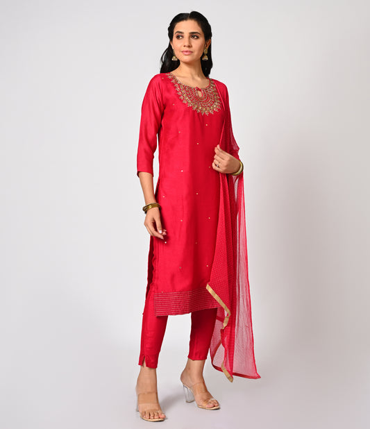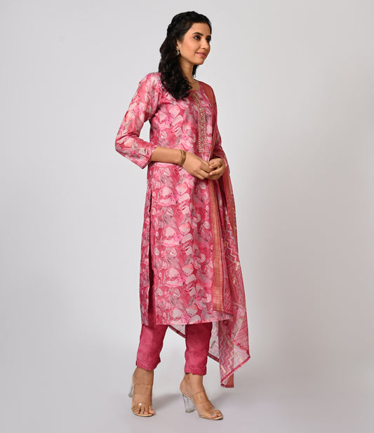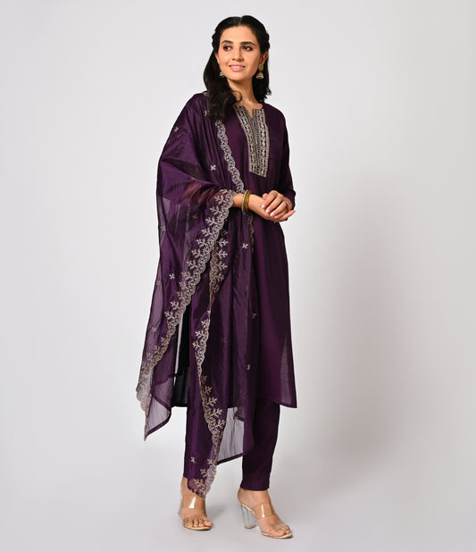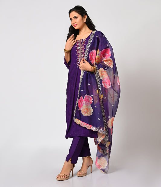 Elegant Violet Straight Cut Set with Organza Dupatta