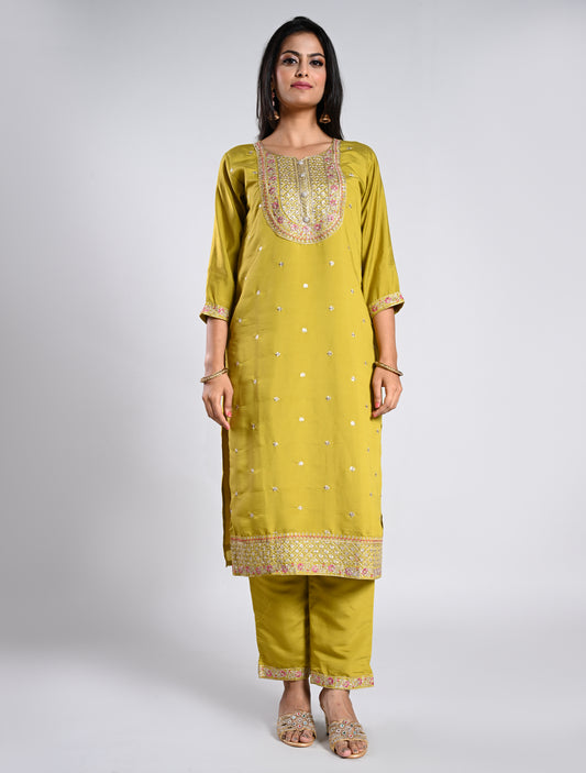 Festive Mehendi Green Straight Cut Kurti Set with Contrast Dupatta