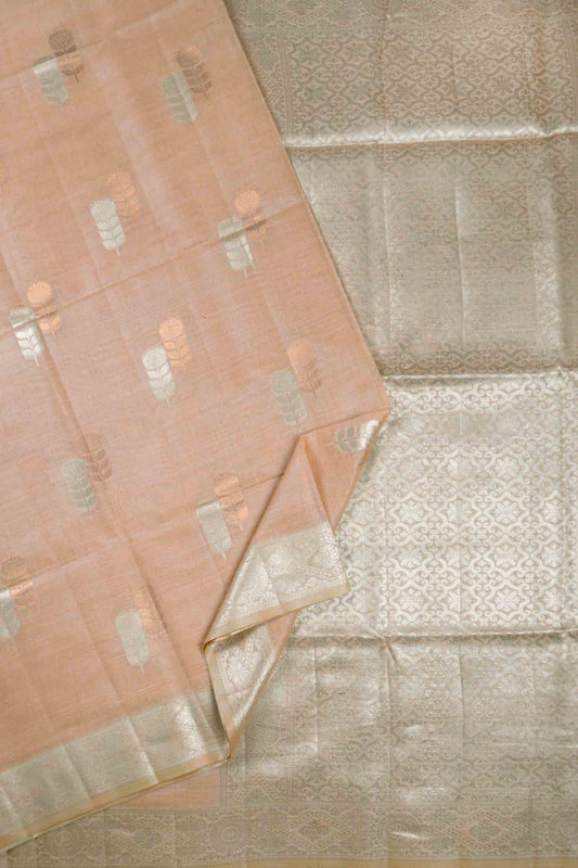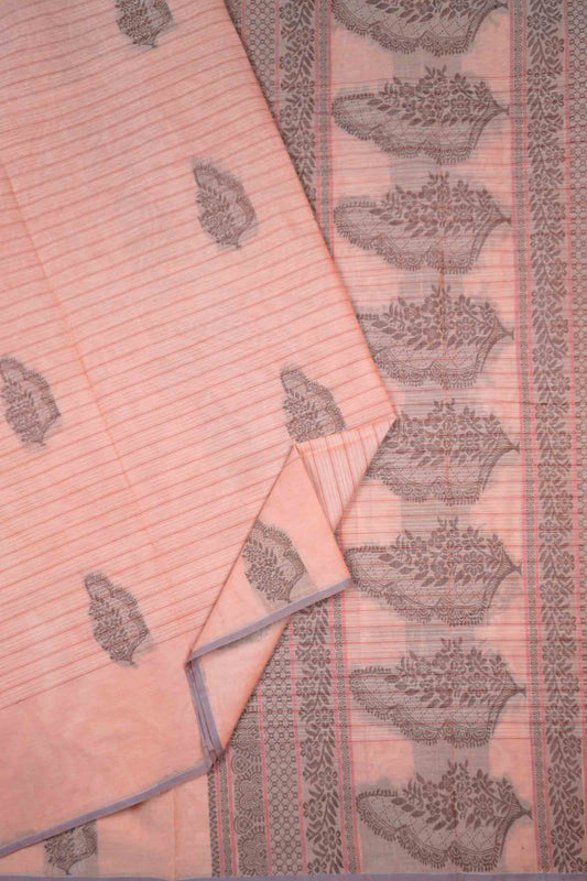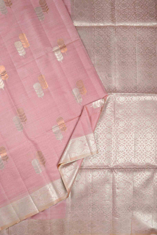 Light Pink Pure South Cotton Lines Butta Leaves Pallu Saree