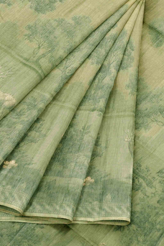 Green Soft Bengal Cotton Flora Fauna Landscape Saree
