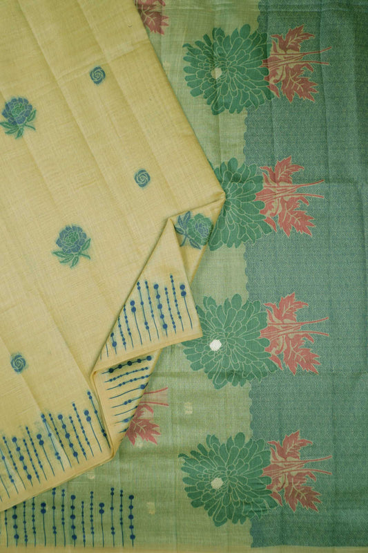 Light Green Soft Bengal Cotton Grand Blooms Saree
