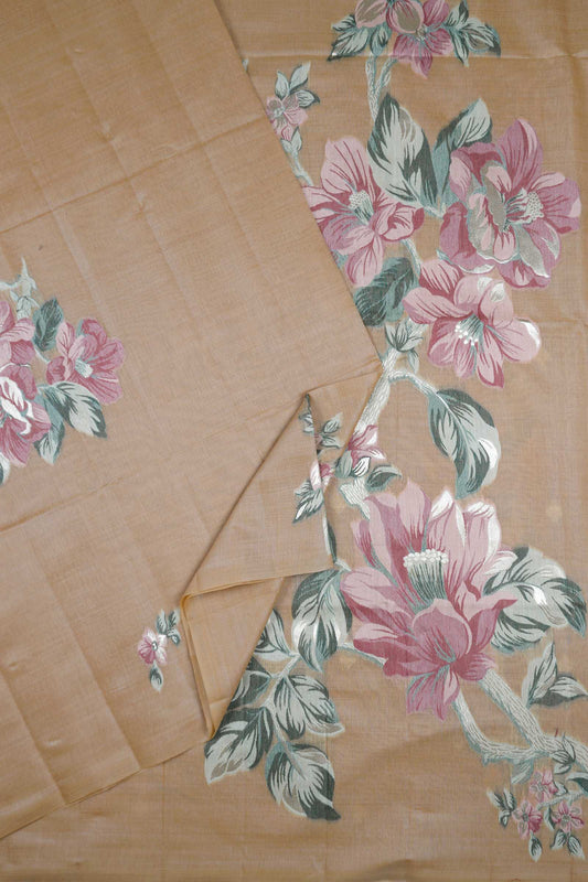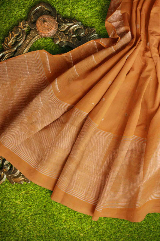 Dark Sandal Soft Bengal Cotton Floral Horizon Zari Pallu Saree