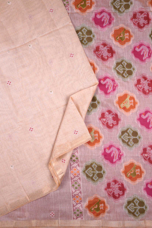 Light Pink Soft Bengal Cotton Dual Leaves Zari Border Saree