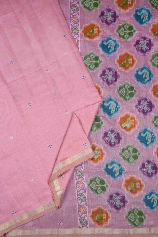 Pink Soft Bengal Cotton Zari Border Emblem Pallu Saree