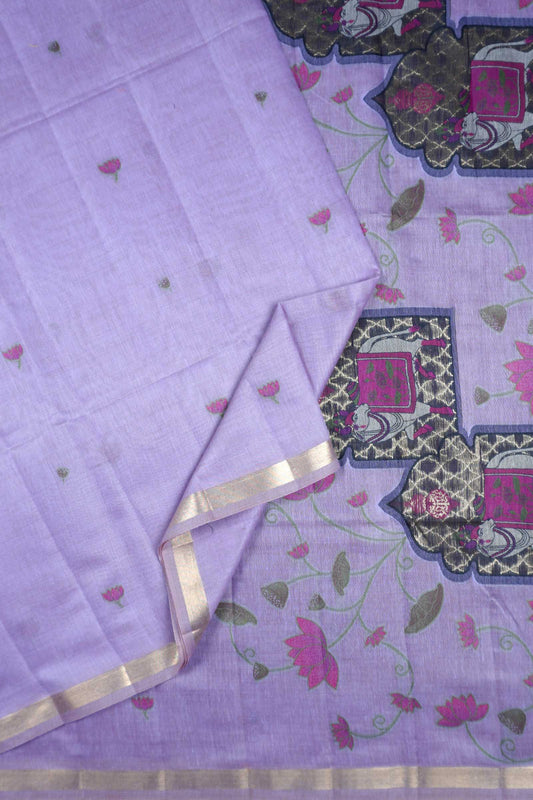 Violet Soft Bengal Cotton Zari Border Royal Pichwai Pallu Saree
