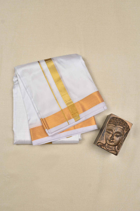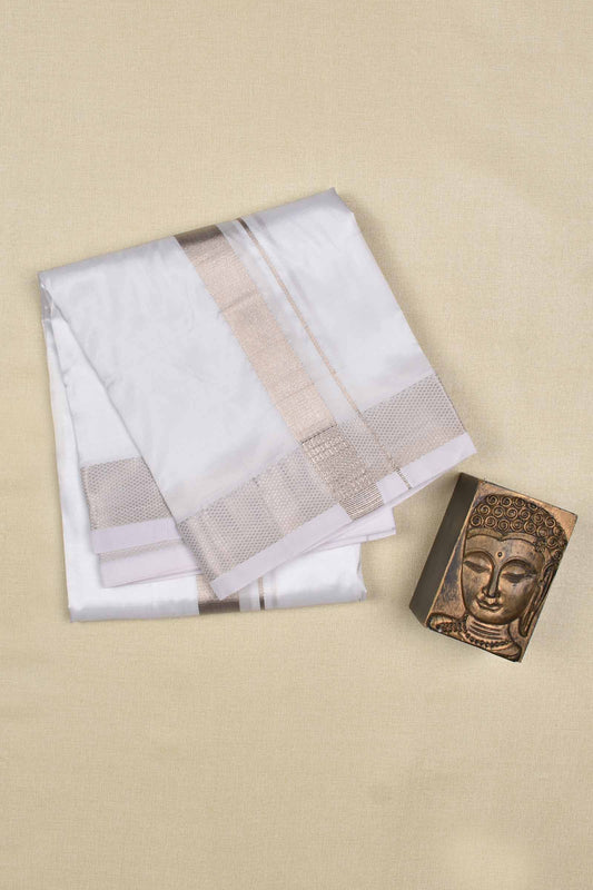 White Pure Mix Silver Border Mens Dhoti