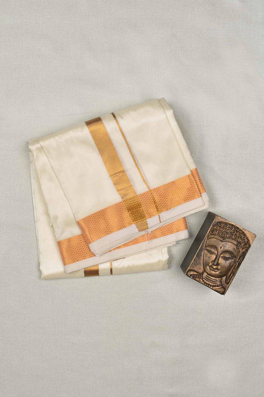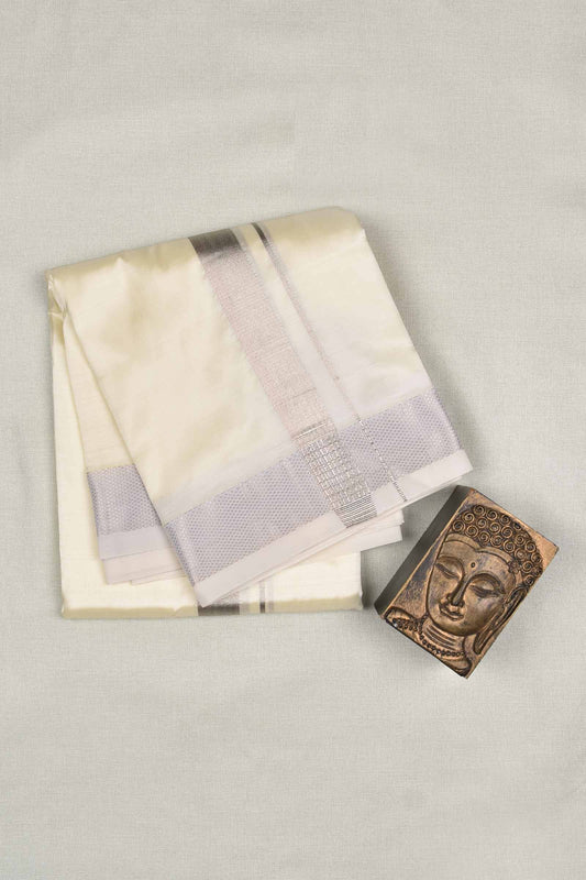 Cream Pure Mix Silver Border Mens Dhoti
